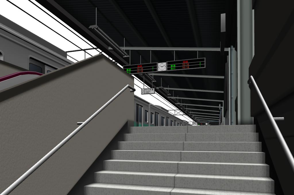 下の画像は階段から見上げた駅構内ですが、3Dモデルの位置を移動させる事でホームに立っている人の視点も作れます。