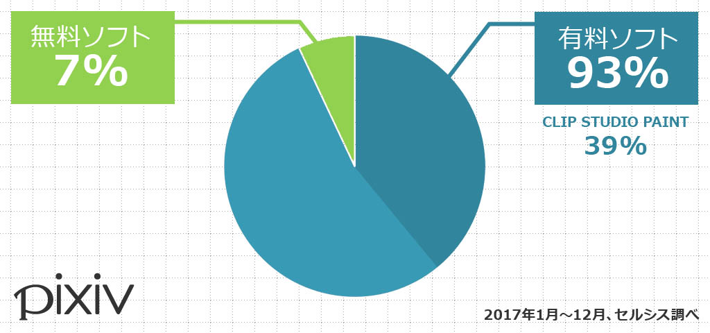下はイラストSNSのピクシブのクリスタ利用率ですが、ピクシブに投稿されるイラストの39%がクリスタで描かれたものなんですよね。